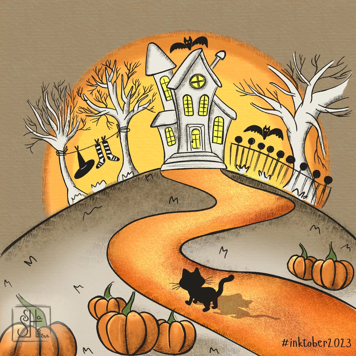 3/31 Нарисовалась еще одна работа для #inktoberdzen. Продолжаю рисовать в тематике «Хеллоуин» и думаю, что не прогадала. Следующая тема в списке «Путь/направление». Каждый сам выбирает свой путь и направление по жизни. Но где бы мы не были, самая главная дорога в жизни любого из нас - это путь/дорога домой. Согласны? Дом это там, где тебя ждут и любят (а еще вкусно накормят). Только домой хочется возвращаться несмотря ни на что. Не совсем успеваю рисовать каждый день и попрежнему отстаю на 1 день. Но лапки не опускаю. Ведь я и планировала, не загонять себя и идти в своем темпе. Скорей всего, следующую тему пропущу. Друзья, спасибо что поддерживаете меня. Это придает уверенности и помогает проходить этот челлендж. Начало моего инктобера можно посмотреть здесь.