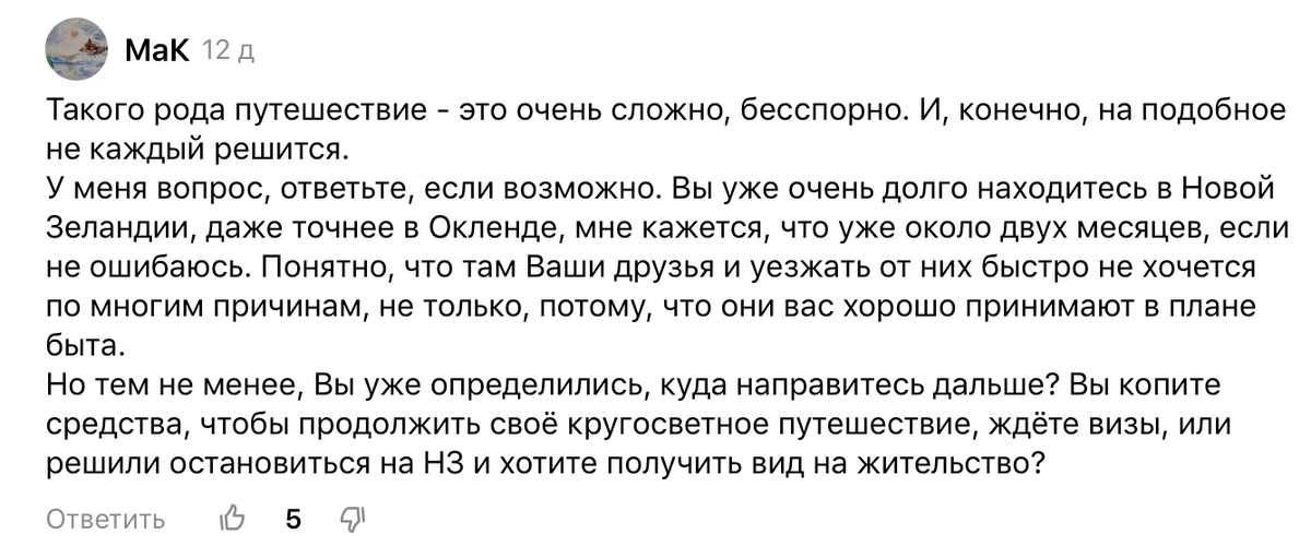 Привет, ребятки. Нам тут недавно в комментариях от вас прилетел вопрос, на который мы решили ответить ещё и для всех, в виде статьи. Нам показалось эта тема интересной и вы все должны об этом знать. И сразу же хочется вам сказать спасибо за подобные ёмкие вопросы, продолжайте в том же духе, в том числе, чтобы мы на них отвечали вот на столько развёрнуто. Итак, наши будни в Новой Зеландии протекают спокойно и размеренно, словно мы заселились в уютный дом далеко от суеты и шума больших городов. Друзья встретили нас с распростертыми объятиями, и вот уже около двух месяцев мы не спешим покидать это гостеприимное место. Многие, конечно, удивляются, почему мы так долго здесь задержались, но ответ на этот вопрос сложный и многогранный. Во-первых, здесь только что закончилась зима, и на южном острове пока ещё довольно прохладно для активных путешествий. Мы решили подождать, пока погода станет более мягкой, и только потом отправимся за новыми приключениями. После долгих месяцев непрерывных пере