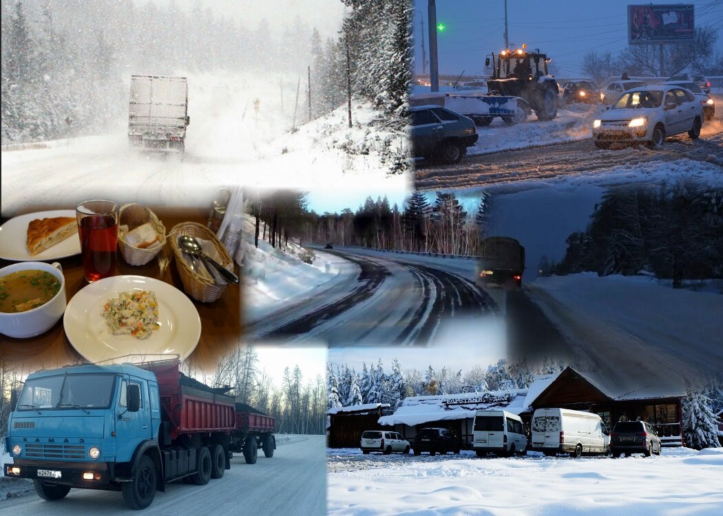 Заехали мы на стоянку, а вокруг красота такая, что… ну красота одним словом, снег всё вокруг укрыл, деревья белые, в свете фонарей на кафе, хлопья снега кружатся.