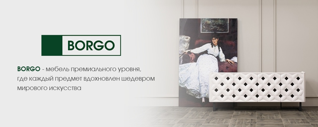 BORGO — один из брендов мебельной фабрики, которая более 20 лет занимается производством корпусной мебели. Фабрика прошла большой путь от мебельной мастерской до производственного предприятия полного цикла, имеющего в портфеле несколько брендов. Сегодня фабрика производит корпусную мебель для дома, офиса, торговых сетей, кафе и ресторанов. Наша история 2001 год- Старт производства мебели в частном порядке руками одного мебельщика 2003 год- Первый договор о долгосрочном сотрудничестве. Компания приобрела статус официального поставщика мебели для региональной аптечной сети. 2008 год- Появились собственные большие производственные площади. Компания стала поставщиком мебели для большинства федеральных и региональных аптечных сетей. 2015 год- Старт развития направления по проектированию и производству торгового оборудования для офисов, ресторанов и торговых сетей. 2019 год- Старт развития направления по проектированию и производству мебели для дома. 2022 год- Обновление производственных мо