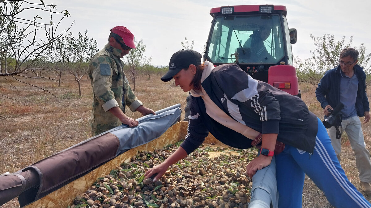 Октябрь – время сбора осенних даров природы – орехов. В Крыму орехов много: они растут как в диких местностях, на частных подворьях, так и на полях аграриев. В одном из садов сельхозкооператива (СПоК) «Крым-сад» в Черноморском районе, на северо-западе полуострова, начали убирать миндаль. «Агромир» объехал пол-Крыма, чтобы понаблюдать за сбором вкусных орешков. К слову, это первый урожай миндаля в этом саду, спустя пять лет деревья дали плоды. Миндаль в хозяйстве занимает свыше 400 га, из них 140 га – плодоносящие деревья. В СПоК возделывают сорта «Никитский 2240», «Десертный», «Милас», «Прибрежный», «Приморский». Июль, август и сентябрь были без дождей, ядро налилось не так, как хотелось бы, говорит руководитель СПоК Роман Фурсенко, но в целом погодные условия для роста и развития миндаля были благоприятными. Сбор продлится ещё 20 дней. После сбора (а собирают миндаль как вручную, так и с помощью техники на фото выше) следующий этап – очистка от околоплодника, затем просушка (миндаль