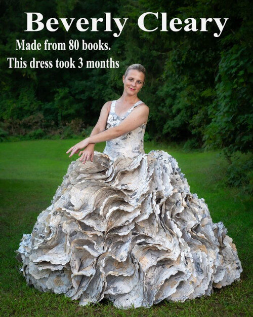 Платья, которые создаёт Ребекка Хьюмс, привлекают к себе немало взглядов — и любопытных, и восхищённых. Это красивые вечерние наряды,но ещё и то, что сделаны они вовсе не из ткани, а из старых книг. Ветхие книги, которые больше не почитаешь, получили вторую жизнь в качестве одежды, которую вполне можно носить. Впрочем, вряд ли такие наряды подойдут для повседневного использования, так что стоит рассматривать их скорее как произведения искусства. Ребекка изготовила удивительные платья, чтобы принять участие в крупном художественном конкурсе, который пройдёт в Гранд-Рапидсе (Мичиган, США). Остаётся только пожелать талантливой женщине удачи и признания её заслуг.