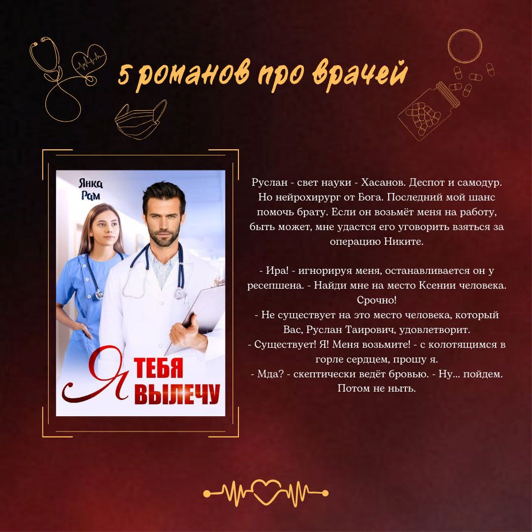 2 октября отмечается Международный день врача, и я не могла пропустить этот повод, чтобы забросать вас своими любимыми медиками Вот пожалста подборка книг про врачей, которые запали в моё сердечко. Герои и героини в них разные, ОЧЕНЬ, от одних хочется спрятаться и о других опереться, третьими восхищаться. А врачами в жизни, конечно, восхищаться в несколько раз больше. Я бы точно не могла взять на себя ответственность за жизни людей, а врачи каждый день нас спасают, лечат, где-то оберегают, часто даже от самих себя. Я тебя вылечу - Янка Рам Дилогия «Будь моим первым» и «Я буду твоим единственным» - Ольга Вечная В октябре дилогия выходит на бумаге под названием «Единственные» Ольга Вечная. «Я подарю тебе ребёнка» - Маша Малиновская «Случайная связь» - Слава Доронина «Выбор» - Анна Белинская P.S. Не могу удержаться и не порекомендовать ещё «Доверься» Ольги Вечной. Там хирург-офтальмолог Павел Адомайтис заставит влюбиться и довериться не только Диану Романовну, но и читателей. Правда кое-