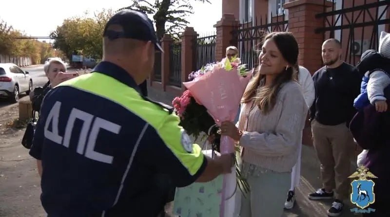 Героев пригласили на выписку из роддома. Полицейские поздравили молодую семью и вручили новоиспеченной матери букет цветов. А счастливые родители поблагодарили инспекторов за помощь.