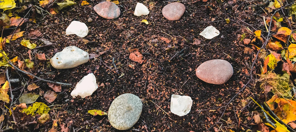 Их должно быть не менее пяти, потому что следующий шаг - найти тихое место, где вы разложите камни вокруг себя, образуя круг. Не нужно двигаться по кругу, создавая красивый круг, а затем заходить в середину, просто выложите камни вокруг себя.