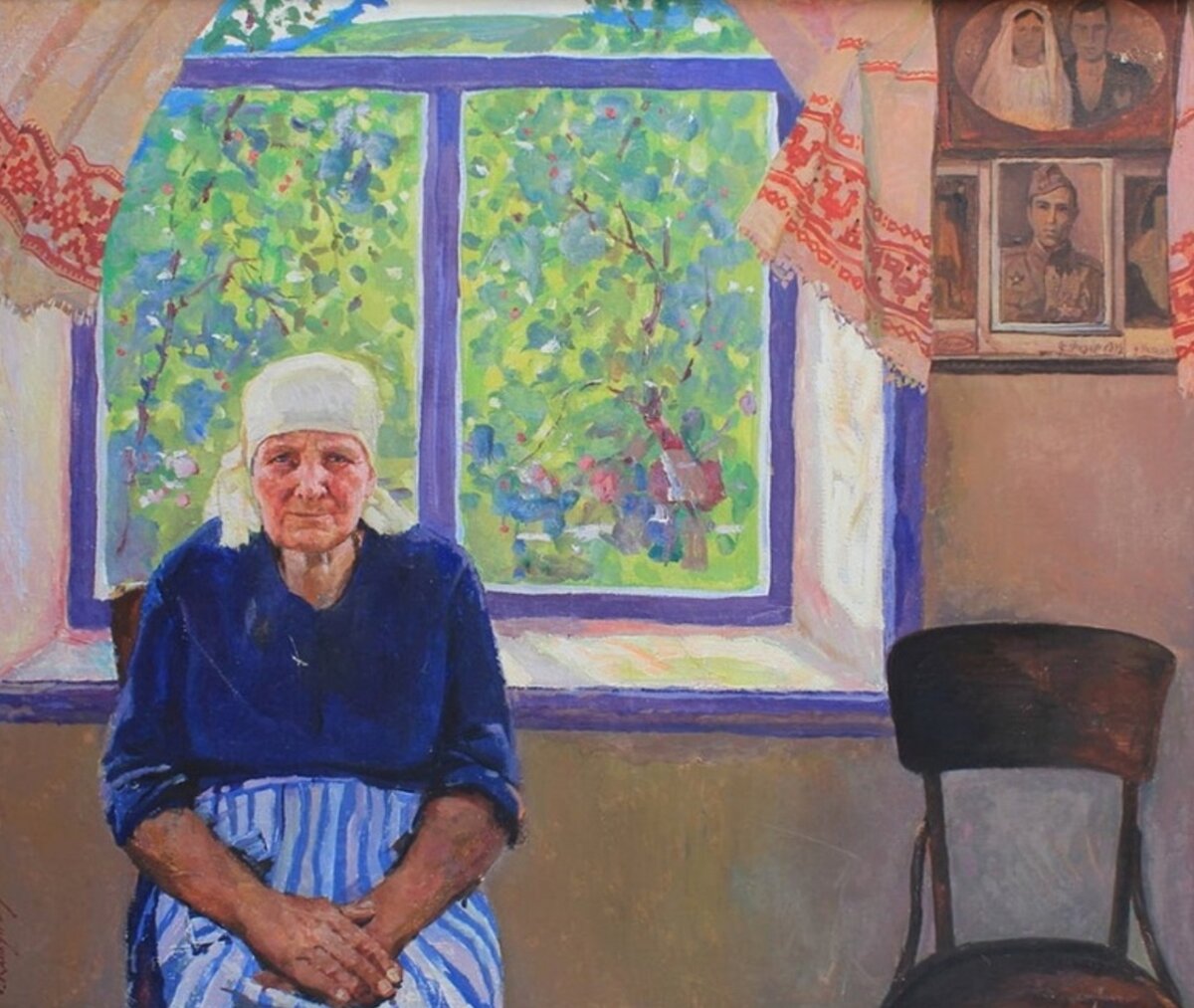 Она сидела за столом. На голове повязан чистый белый платок. Синяя кофта обтягивает сутулые плечи. В глазах - вселенская тоска? Скорбь?