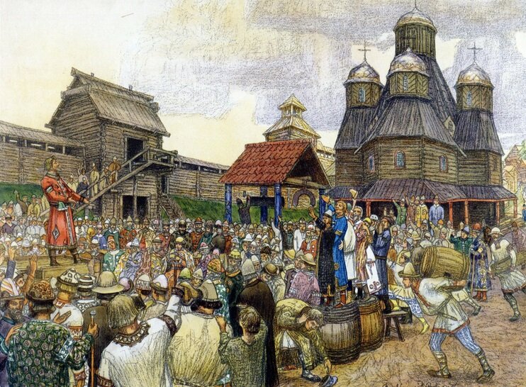 Великий Новгород был одним из самых крупных государств древней Руси, и его владения простирались на огромную территорию. В то время, когда Новгород был преимущественно русским государством, его население было очень разнообразным и многонациональным. В городе жило много неславянских народов, которые были во всем равны русским. Новгород состоял из двух частей - Софийской стороны и Торговой. Каждая из этих частей имела свое собственное самоуправление, где решались локальные вопросы. В начале истории Новгорода каждый конец получил название по народу, который в нем проживал. Например, в Славенском конце селились восточнославянское племя ильменских словен, в Людине конце жили карельское племя людики, а Неревский конец был связан с загадочным племенем Нерева/Нарова, происхождение которого до сих пор неизвестно. Кроме названий концов, об этническом многообразии города свидетельствуют и названия улиц. Например, на Прусской улице проживали купцы-пруссы, представители прибалтийского народа, кото