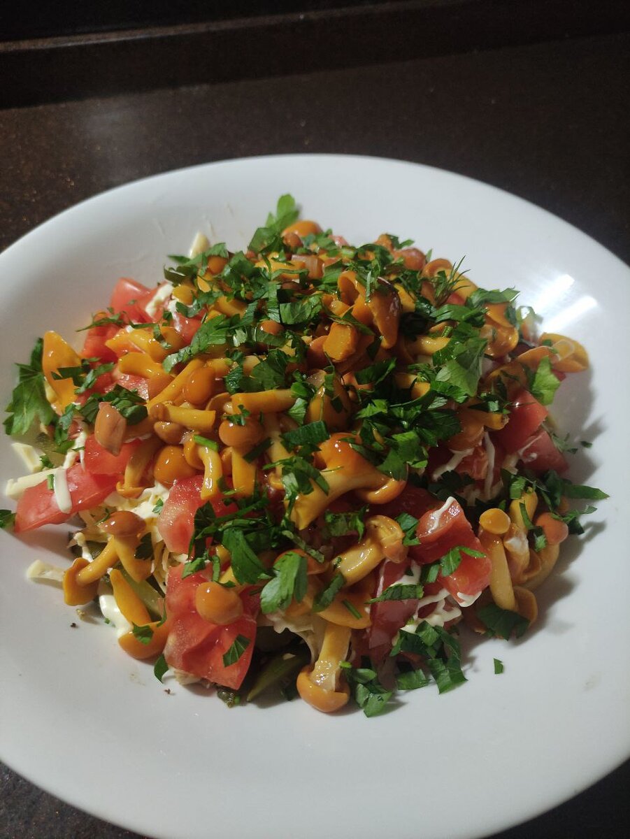 В оригинале, этот салат назывался Каприз, но на Каприз, он мне был не сильно похож, я спросила у ИИ, как можно назвать с таким составом салат , предложил : Лесной, Лесная феерия и Курица под прикрытием. Выбирайте) Салат слоеный. Первый, будет курица, в оригинале - отварная, я обжарила Чуток майонеза и маринованный огурец соломкой майонез на этот слой не добавляла, а следующий слой , сыр на терке, у меня был "Российский" чуток майонез и кубиком свежий помидор, помидоры, это единственный слой, который я присолила, в остальных ее достаточно ну и финишный слой, это опята, при желании можно украсить зеленью И вуаля! легко, быстро и очень вкусно! попробуйте, вам обязательно понравиться! #салат #рецепт #опята #грибы #вкусно #майонез