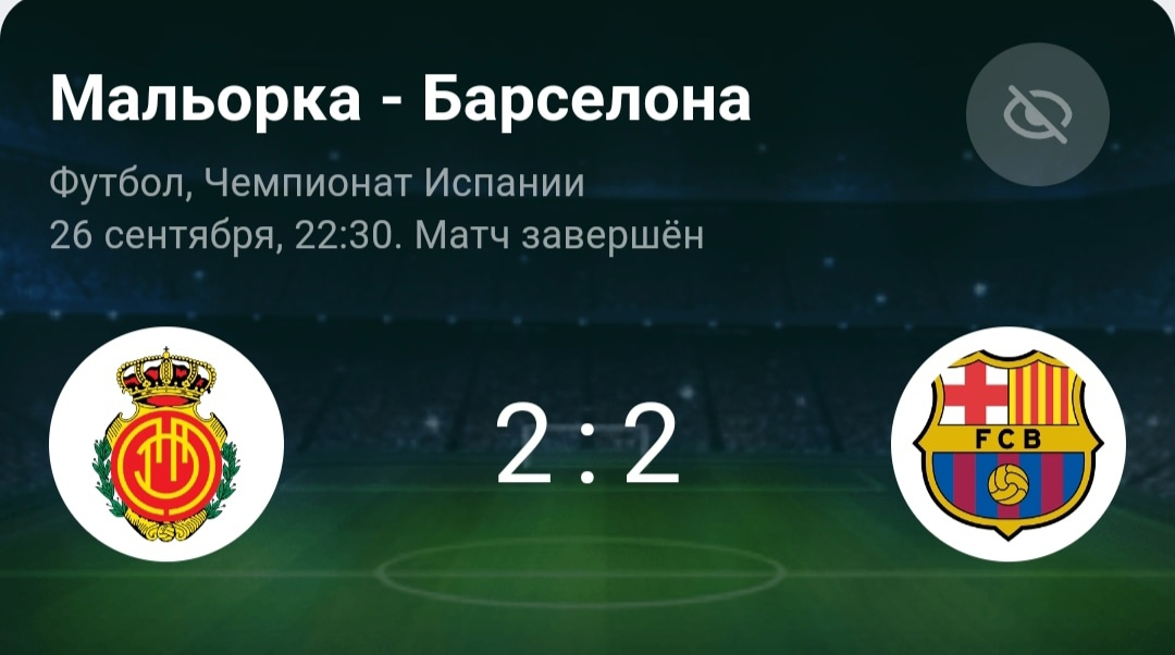 Всем привет. Поговорим о матче чемпионата Испании по футболу. Мальорка на своём поле принимала Барселону. Перед началом разбора самой игры немного информации о командах. Барселона - это топ клуб Испании. Команда имеет звёздный состав. В составе Барселоны сейчас играют такие футболисты как Френки Де Йонг, Гави, Роберт Левандовски, Рафинья и многие другие. Каталонцы очень хорошо начали сезон. Барселона в начале чемпионата набрала неплохую игровую форму. Это помогает ей сейчас стабильно находиться на первом месте в турнирной таблице. Хотя до этого лидером был Мадридский Реал. Королевский клуб в прошлом туре потерпел первое поражение в сезоне от Атлетико. Это и позволило Барселоне временно возглавить турнирную таблицу высшего дивизиона Испании, Но если Реал сегодня обыграет Лас Пальмас Каталонцы снова опустятся на второе место. Теперь про хозяев поля Мальорку. У этой команды в начале нового сезона чемпионата страны дела складываются мягко говоря не очень хорошо. Мольорка играет крайне нестабильно. Да привычно видеть команду в середине турнирной таблицы, но это если говорить про середину сезона когда будет сыграно 14 или 15 матчей. Клуб всегда начинает сезон в высшим дивизионе Испании очень хорошо и в первых турах редко терпит поражения и очень мало теряет очки, что позволяет ей находиться в первой десятке. Сейчас мы видим другую Мальорку. В последних пяти играх команда потерпела два досадных поражения от Жироны и Атлетика и одержала всего лишь одну победу над слабенькой Сельтой. Да у Мальорки есть определённые проблемы с составом. Не играют Антонио Раильо и бывший футболист Валенсии Тони Лато, Но ведь у клуба есть и другие ребята, которые могут взять на себя бомбардирские роли. Это Абдон Пратс и Видад Мурики. Даже с таким составом Мальорка показала характер в домашнем матче против Барселоны. Несмотря на давление со стороны Каталонцев хозяева смогли забить два мяча и финальный свисток арбитра зафиксировал боевую ничью.