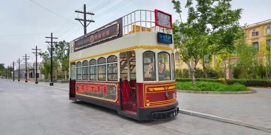 В Китае продают двухэтажный электрический автобус, похожий на трамвай