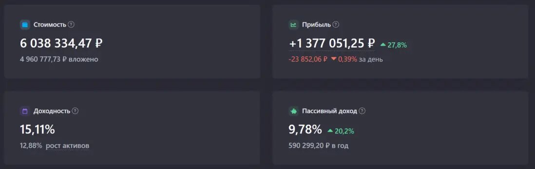 Прирост +3,72 млн ₽ за 1 год. На самом деле, никакого финансового гения здесь нет. Секрет такого результат простой - вложено +1,93 млн ₽ новых средств (из них 328 тыс. ₽ реинвестированных дивидендов и 1,6 млн ₽ своих).