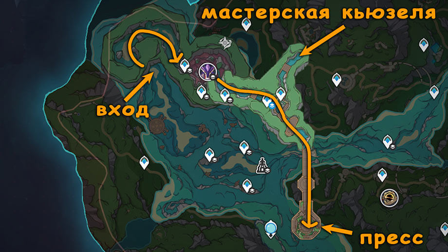 Ковочный пресс в Genshin Impact позволяет из заготовки выковать Люменит-Архиум, необходимый для открытия большой двери и получения скрытого достижения. В гайде описано: где находится Ковочный пресс в Фонтейне, как отрегулировать давление в трубе с помощью вентилей, а также как активировать систему охлаждения и включить функцию аварийного водоотвода. Как добраться до Ковочного пресса Ковочный пресс находится в Фонтейне в печатной мастерской Браве, чтобы до него добраться нужно пройти до конца по подводной дороге. На западе Фонтейна под водой находим вход в пещеру, которая ведет к боссу Морской конек тысячелетней жемчужины. Идем на другую сторону пещеры и ныряем в небольшой водоем с Гидрокулом. Этот водоем позволяет попасть на подводную дорогу. По пути берем Гидрокул и Гидрокул, выходим к пещере с меком, за убийство которого можно получить Кумулятивный накопитель энергии, необходимый открытия клетки с Рокошным сундуком и получения скрытого достижения. В пещере есть два прохода: левый ве