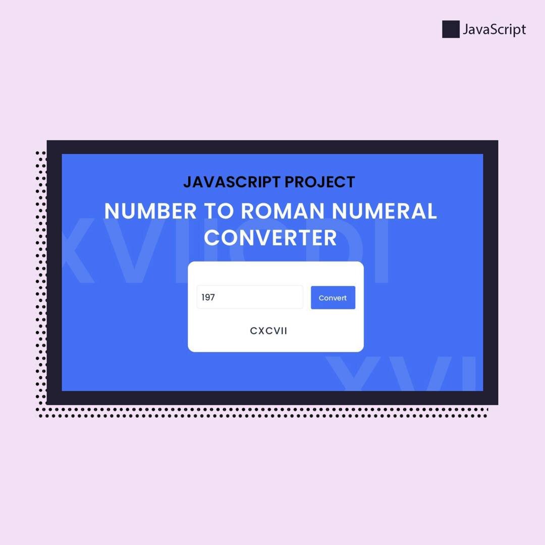 Можете использовать готовый код ниже, чтобы создать конвертер арабских цифр в римские на H <!DOCTYPE html> <html lang="en"> <head> <meta name="viewport" content="width=device-width, initial-scale=1.0" /> <title>Number To Roman Converter</title> <!-- Stylesheet --> <link rel="stylesheet" href="style.css" /> </head> <body> <div class="container"> <div class="input-wrapper"> <input type="number" id="input" placeholder="Enter Number Here..." /> <button type="submit" id="submit">Convert</button> </div> <p id="output"> <span>Enter The Number & Hit Convert</span> </p> <p id="error"></p> </div> <!-- Script --> <script src="script.js"></script> </body> </html> * { padding: 0; margin: 0; box-sizing: border-box; font-family: "Poppins", sans-serif; } body { background-color: #4470f3; } .container { background-color: #ffffff; width: min(90%, 450px); position: absolute; transform: translate(-50%, -50%); left: 50%; top: 50%; padding: 3em 2em; border-radius: 0.8em; } .input-wrapper { display: grid; g