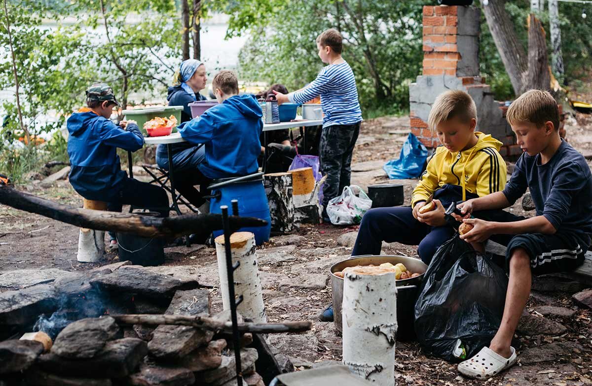 «Они возвращаются из похода чумазые и уставшие, но какими же уверенными в себе они становятся!» – говорит руководитель проекта «Помощь детям» екатеринбургской «Православной службы милосердия» Елена Борщик. Они – это подростки из многодетных и малообеспеченных семей, ребята из детских домов. Круглый год, и летом, и зимой, ребята ходят в походы, сплавы и экспедиции. Именно так, в сложных условиях, уверены организаторы проекта, можно познакомиться с собой настоящим и испытать себя на прочность. «Они все очень крутые перед экранами компьютеров, а ты попробуй остаться крутым, когда на озере шторм, ветер, а тебе надо поставить палатку. Мы осознанно устраиваем детям некомфортные условия, без телефонов, без гаджетов», – рассказывает Елена. 10 лет в Екатеринбурге существует проект «За други своя». В каждый поход ходят до полусотни подростков. Вместе с ними – педагоги, родители, психологи и священники. В полевых условиях они не только работают рядом друг с другом – гребут против течения, готовят