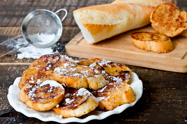 На этот раз я использовал старый багет, но подойдет и любой другой хлеб, если дать ему состариться. Если использовать старый хлеб, тосты пропитают больше яичной смеси и лучше сохранят форму во время приготовления.