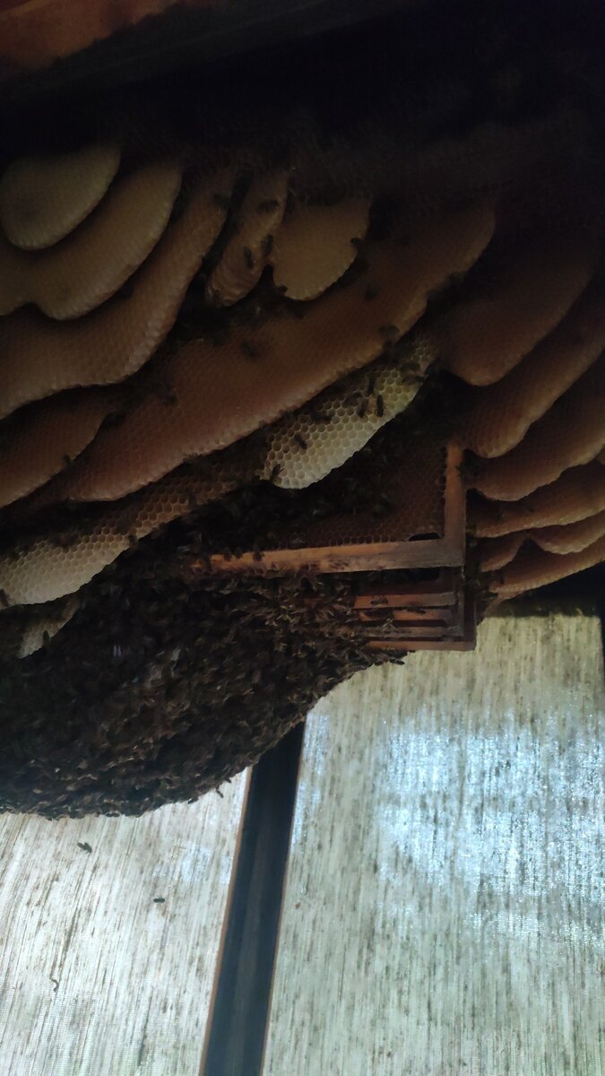 Мед слезает с потолка ярусами, но это мед. Именно так в диких условиях пчелы делают мед. Он непроизвольно спускается вниз.