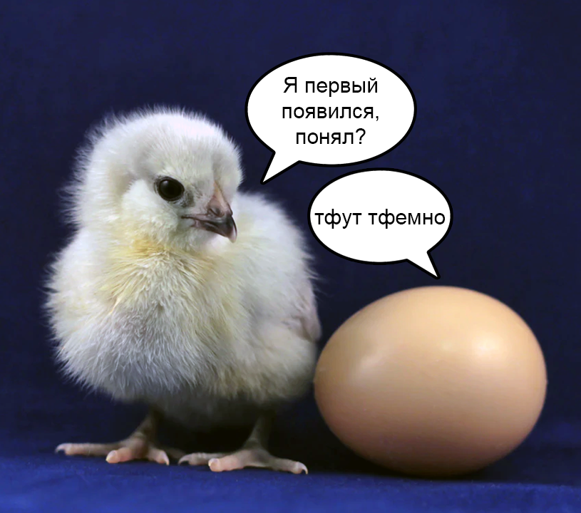 - Подожди, а причём тут вообще курица и яйцо? Это же абсолютно разные вещи, которые никак не связаны между собой.