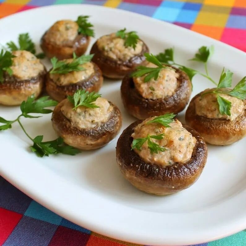 Шампиньоны целиком, фаршированные сыром и луком - это отличная закуска на любой стол. Они хороши не только в горячем виде, но и холодными. Ингредиенты Шампиньоны крупные - 10-15 шт Сыр твердый - 250 г Микс свежей зелени - 20 г Чеснок - 2 зубчика Лук репчатый - 1 шт Растительное масло - 1 ст.л. Соль и перец - (по вкусу) Приготовление блюда: Шаг 1 Шампиньоны моем, удаляя остатки почвы, под холодной проточной водой. Обсушиваем. Шаг 2 Из каждого гриба аккуратно, чтобы не повредить шляпку, выкручиваем ножки. Вырезать ножом не стоит. Шаг 3 Складываем грибные шляпки в миску, солим, перчим и добавляем 1 столовую ложку растительного масла. По желанию можете приправить любимыми специями. Перемешиваем и пока оставим на столе. Шаг 4 Чистим одну крупную луковицу. Нарезаем ее мелким кубиком. То же самое делаем с грибными ножками. Шаг 5 В сковороде разогреваем 3 столовые ложки растительного масла и закладываем лук с грибами. Шаг 6 Помешивая, обжариваем на среднем огне до румяного цвета. Шаг 7 150
