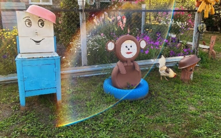 Живет в селе Редкодубье Ардатовского района мастерица Татьяна Устимова. Работы её местные жители оценили давно, многие приходят к дому, чтобы полюбоваться, поучиться, самим попробовать сделать что-то подобное, узнать, какой материал подобрать. Она никому никогда не откажет, всегда готова прийти на помощь. О ней я знала давно, ещё в далеком детстве прибегала посмотреть на персонажей мультфильмов. Играя, мы представляли, что попали в сказку. Даже теперь, спустя столько лет, приходя к её дому, радуешься этим чудесам. Герои сказок Созвонившись накануне, в назначенное время приехала вовремя. Меня встретил светофор и маленький «сотрудник ГИБДД» с жезлом: «Стой, мол, дальше не проедешь». Здесь можно увидеть героев всеми любимых мультиков, сказок, которые мамы читали нам перед сном. Вот дядюшка Мойдодыр из стихотворения Корнея Ивановича Чуковского, неподалеку расположился лучший друг Крокодила Гены – Чебурашка, рядом — Чудо-печь, которая напоминает советский мультфильм «По щучьему велению», то