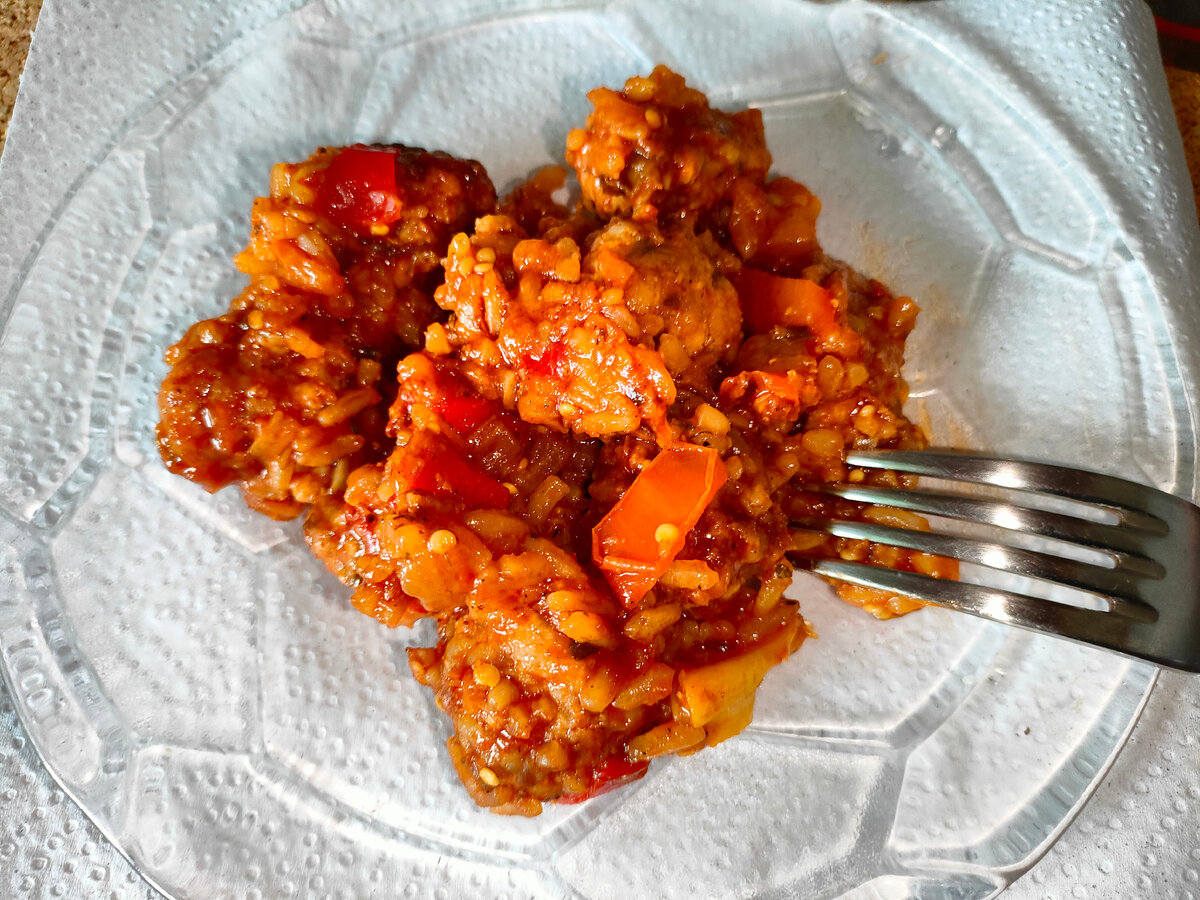 Итог. А блюдо по вкусу очень близко к вспоротому животу, но там, естественно, риса нет. Если не пробовали исходник, то это тефтельки со вкусом насыщенного томатного соуса с нотками востока (тмин или зира, аджика, травки😉). Нам зашло. Но если хотите более овощное, просто не добавляйте рис. А Вы готовите что-то подобное? Делитесь рецептом 😉