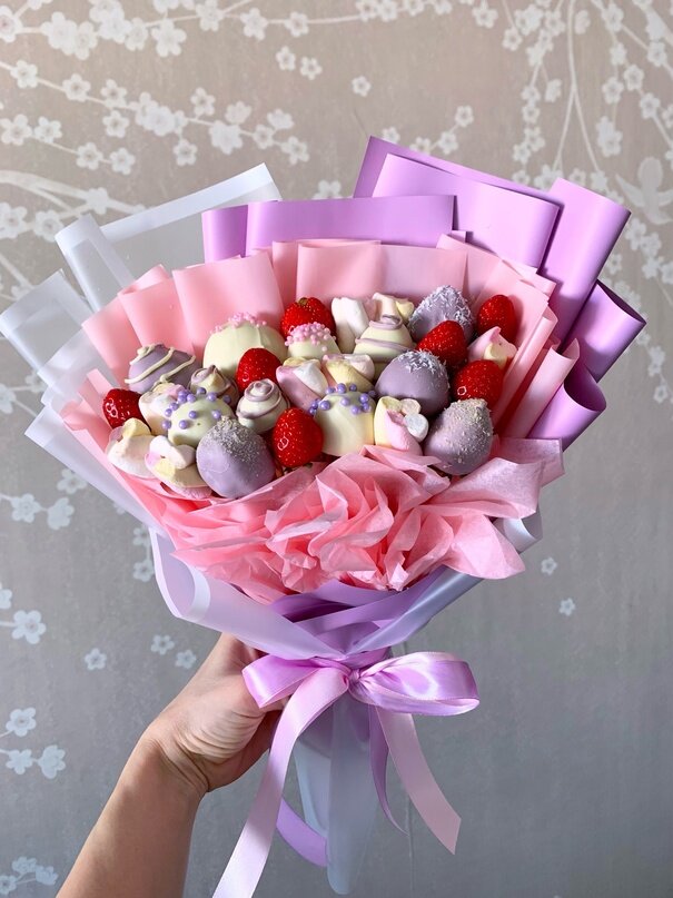 Даже не знаю, что в букете из клубники в шоколаде лучше: прекрасный сочный вкус, сумасшедший аромат или радующий глаз дизайн