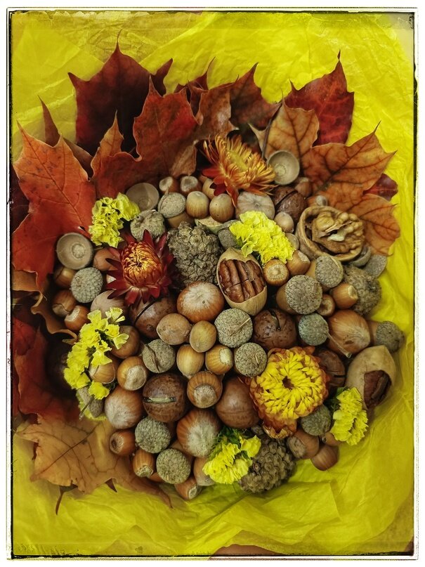 А так как я букетами занимаюсь, то родилась у меня идея использовать эти листья при создании букета. А ведь такой букет можно сделать лишь в одно время года - осенью.