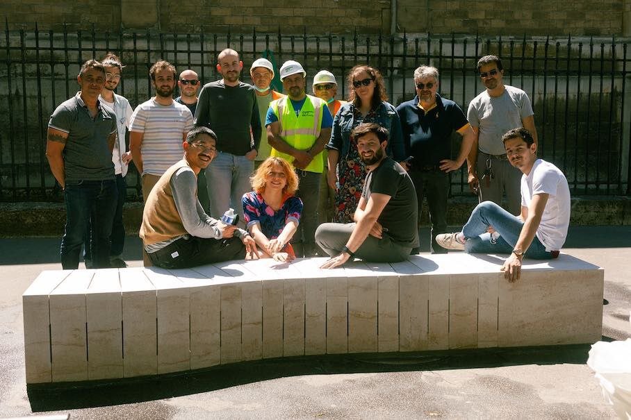 Подумал – сделал. «Air des Carrières» (воздух из карьеров) — название проекта. Это скамейка из известняка Пьера де Бургонь. Он состоит из отдельных элементов.