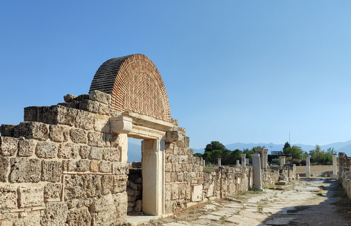 По дороге в Памуккале заехали в древний город Лаодикея. Километров за десять направо поворот. Конечно, поднадоели уже эти античные развалины. Но крюк небольшой. Километра полтора всего. Стена. Древние ворота в город. Но первый взгляд оправдал худшие ожидания. Каменистая пустыня. С разбросанными обломками древнего города. Одно успокаивает- город любви. Индийский раджа в память о своей жене Тадж- Махал построил. Вот такая любовь. При родах четырнадцатого ребёнка скончалась бедная женщина. А вот царь Антиох II в честь любимой жены целый город построил. В 261—253 гг. до н. э. И назвал в честь жены. Лаодики. Город большой. Остатки улиц проглядываются. От домов лаодикийцев только фундаменты раскопали. Лаодикия долго отбивалась от всяких набегов. До 1255 г. была этаким греческим анклавом в турецком окружении. Но после захвата города Тамерланом, жители стали покидать город. Но далеко не ушли. Основали рядом новый город. Денизли. Сейчас это современный город. Больше полумиллиона народа живёт. Н