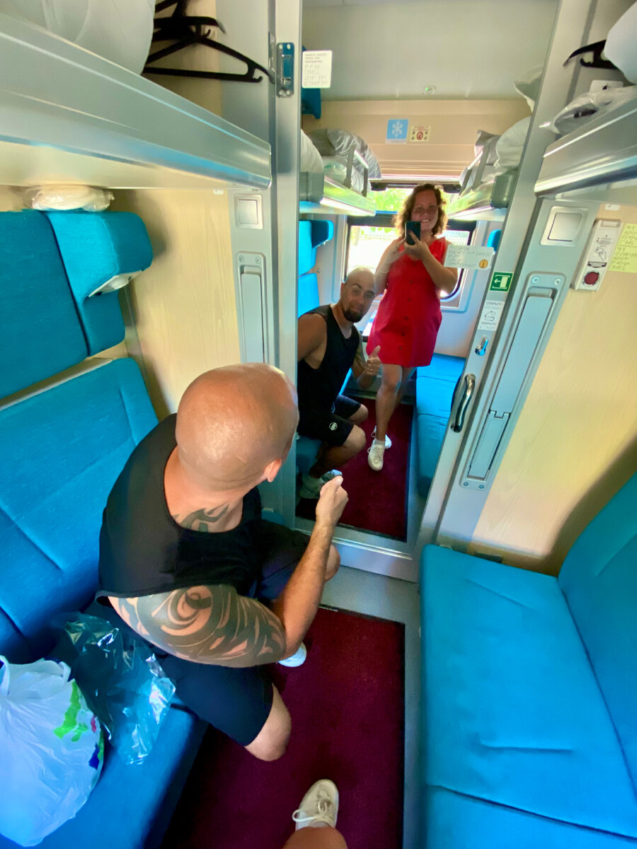 Поезд в это время уже стоял на месте, но наше купе было свободным, поэтому я успела сделать для вас много снимков, пока полки не застелены, а четыре пассажира не устроили там хаос.
