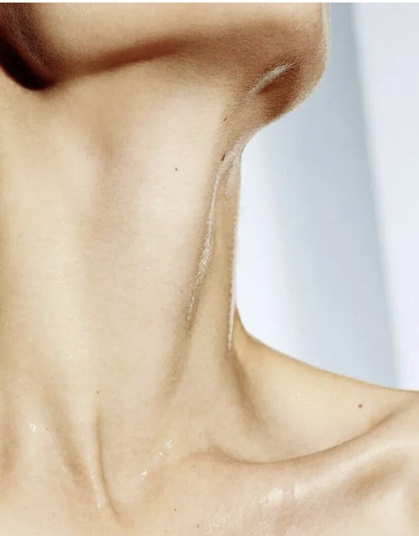 Кожа шеи тонкая и сухая, в ней мало желез, вырабатывающих кожное сало (себум). Потому она очень чувствительна к Солнцу, признаки фотостарение на ней проявляются раньше, чем на лице. Не забываете защищать кожу шеи и декольте санскринами.