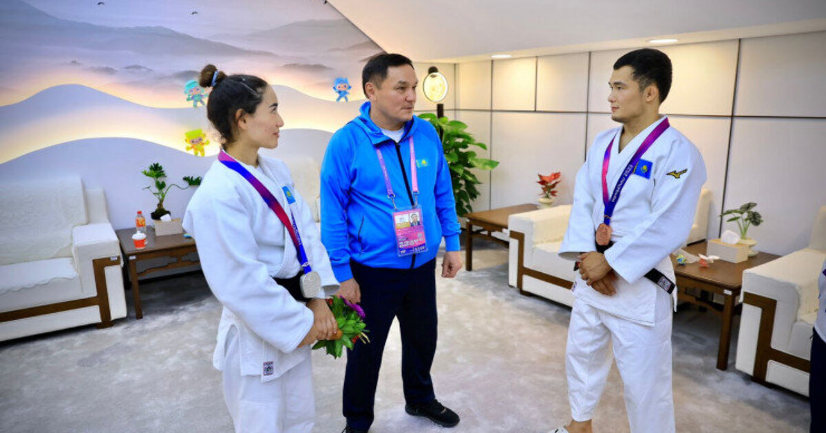 Министр спорта Казахстана поздравил дзюдоистов с медалями Азиады