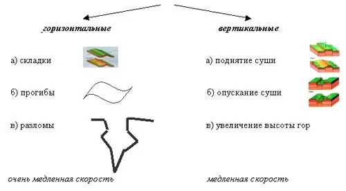 Какие движения испытывает земная кора? Земная кора все время движется. Внутренние силы приводят в движение её крупные блоки, а внешние силы действуют на поверхности.Движения земной коры могут быть очень медленными,и незаметными для человека. По направлению движения бывают: Но чаще они происходят одновременно. ВЕРТИКАЛЬНЫЕ ДВИЖЕНИЯ ВЫЗЫВАЮТ ПОДНЯТИЯ И ОПУСКАНИЯ, ГОРИЗОНТАЛЬНЫЕ — СЖАТИЯ И РАСТЯЖЕНИЯ В СЛОЯХ ЗЕМНОЙ КОРЫ. История движений земной коры отражается как в зеркале в залегании горных пород. Как возникают землетрясения? Землетрясение — резкие внутренние толчки и колебания земной поверхности, возникшие в результате движений в земной коре или в верхней мантии. ЗЕМЛЕТРЯСЕНИЯ ВОЗНИКАЮТ В РЕЗУЛЬТАТЕ РАЗРЫВОВ И СМЕЩЕНИЙ В ЗЕМНОЙ КОРЕ, ПРОЯВЛЯЯСЬ ТОЛЧКАМИ И СОТРЯСЕНИЕМ. Очаг землетрясения- место под землей,откуда, сотрясая толщи горных пород, во все стороны распространяются колебания. Эпицентр землетрясения(от греческого сл