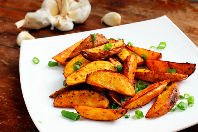 Вот простой рецепт дольки запеченного картофеля, который я продолжаю делать в последнее время. Меня попросили опубликовать несколько простых, но вкусных рецептов картофеля, которые можно легко приготовить в качестве закуски с кетчупом или соусом чили, гарнира к мясу или просто свежего салата. Я очень часто готовлю эти запеченные дольки как более полезную альтернативу картофелю фри. Я не нашел человека, которому бы они не понравились, так что это отличный рецепт, если к вам приходят друзья. Дети тоже их любят, просто следите, чтобы они не стали слишком острыми, если рядом есть дети. Вы можете сделать множество вариаций этих ломтиков запеченного картофеля, например, добавить зелень или другие специи или посыпать сверху сыром сразу после того, как они вынуты из духовки. Если у вас есть другие предложения, я буду рад поделиться ими здесь, в комментариях. ПОРЦИИ: 4 порции ВРЕМЯ ПОДГОТОВКИ: 15 минут ВРЕМЯ ПРИГОТОВЛЕНИЯ: 25 минут ОБЩЕЕ ВРЕМЯ: 40 минут Ингредиенты Инструкции Питание Порция: 1