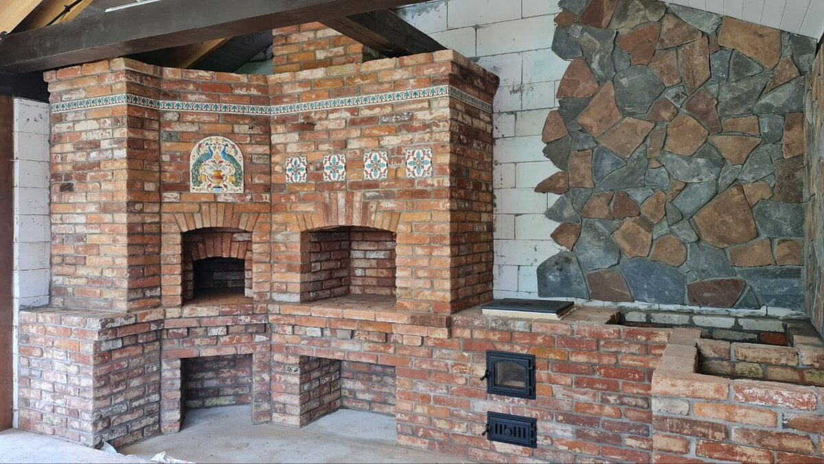 Всем привет! Соскучились? У анс много работы, поделимся кусочком еще недоделанного проекта. Это наш очередной шедевр - мангальный комплекс из старинного царского кирпича 19в, украшенный изразцами ручной работы