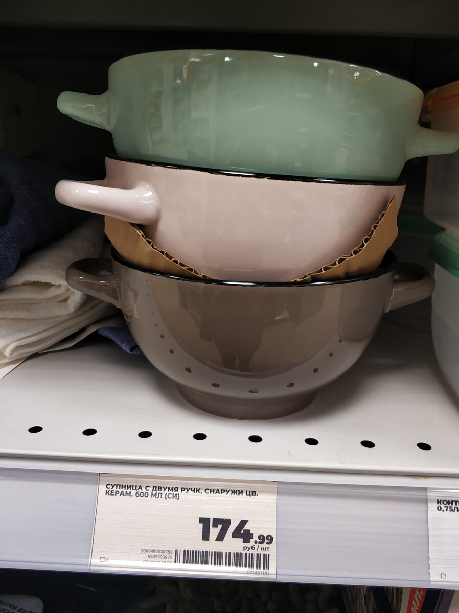 Приветствую, уважаемые! Это обзор из обычного магазина "Магнит у дома", никуда в Семейный или Гипер не ездила. Но туда тоже стоит съездить, ближайшие дни поеду. А пока из обычного, около моего дома покажу интересные и стоящие товары для кухни. Я сегодня не буду акции показывать. Каталог сменился на неделе, но особенного ничего не нашла в скидках. Поэтому на этой неделе не делала обзор из Магнита... НО... зашла вечером в магазин и увидела полки с новой посудой! Прямо глаза радуются. Нет, знаете ли... меня нельзя запускать в посудные отделы, это моя слабость. Муж ругается, что кухня и даже балкон забиты посудой, девать некуда, а все время хочу купить еще... Хотя он, конечно, радуется, когда стол всегда свежий, новый... и ничего не приедается. Я меняю по сезонам и по настроению посудную коллекцию на кухне. Но соглашусь, что покупать дальше можно только, если раздать что-то старое другим. Хотя бы посмотрю другие виды посуды в магазинах. Хоть так успокаиваю душу. Вот, сегодня из Магнита