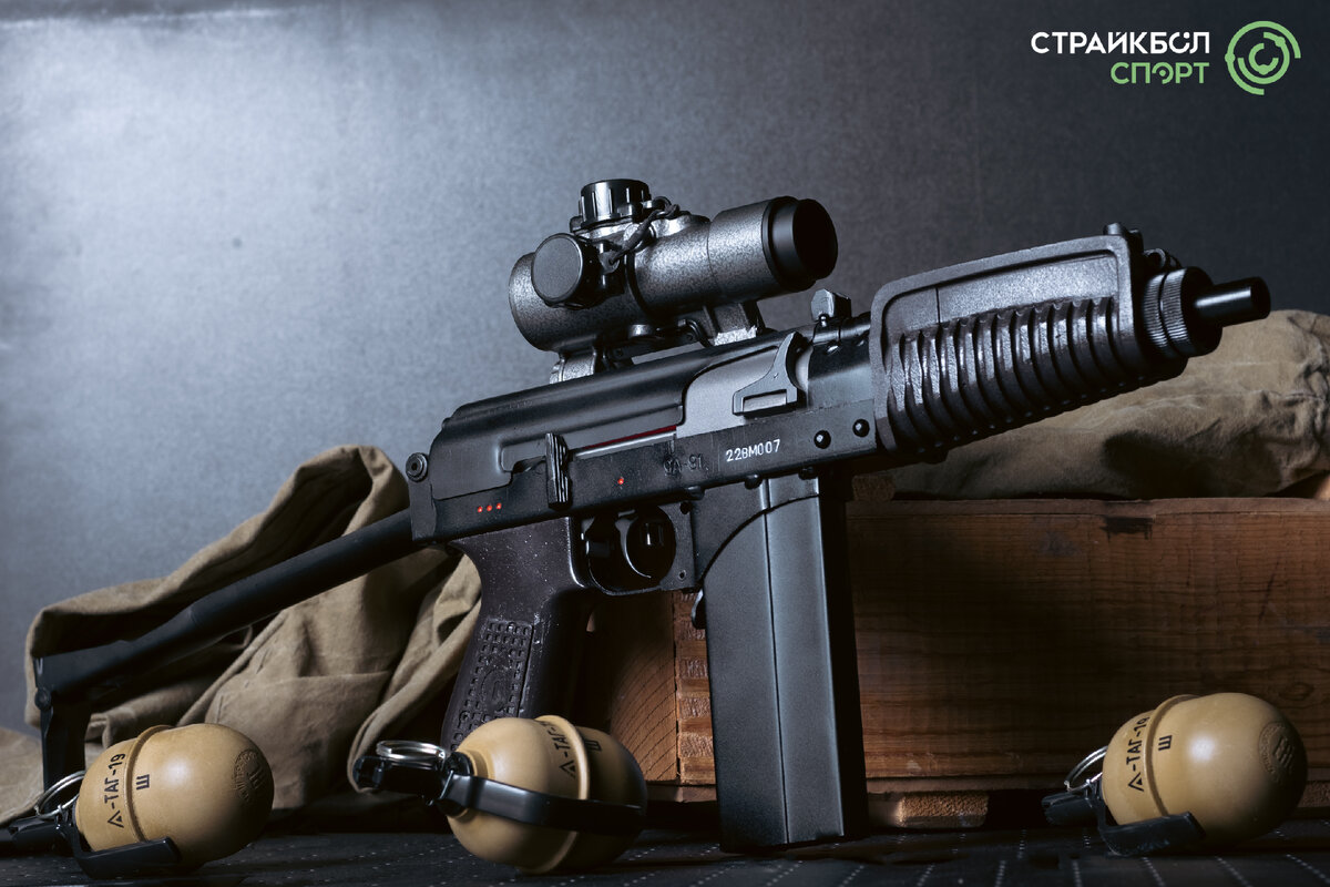 Страйкбольный автомат 9А-91У от российского производителя НПО "АЕГ" является репликой малогабаритного автомата 9A-91.
