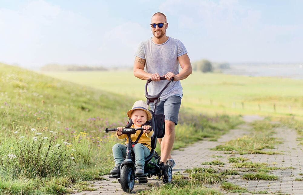 Катаясь на трехколесном велосипеде, малыш получает массу позитивных эмоций, тренирует мышцы, учится держать равновесие и развивает другие необходимые навыки.