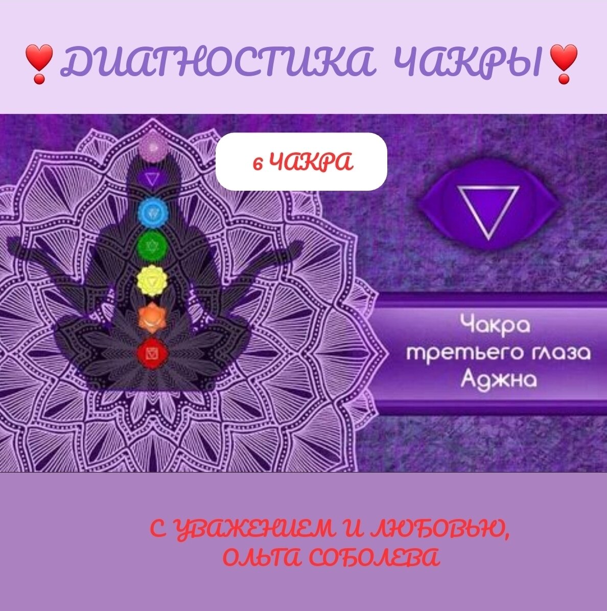 ✨️6.чакра Аджна Её ещё называют "Третьим глазом". Находится она в точке между бровями. ✨️Эта чакра контролирует нашу центральную нервную систему, гормональные железы и органы, которые расположены в области "третьего глаза" (то есть-это мозг, уши, шейный отдел позвоночника). 💥Чакра отвечает за то, чтобы видеть подсказки Вселенной, иниуиция, умение визуализировать и умение смотреть со стороны, понимать важность мысли и фантазии, и формирование будущего, это свобода от иллюзий человеческого мира, способность выстраивать стратегию жизни, осознание истинного предназначения. Сюда же входит: экстрасенсорные способности, ясновидение, яснослышание и астральное зрение. Всё это относится к шестой чакре. 🌙Если есть блоки, то человек может испытывать проблемы с памятью, зрением, ясность сознания, головная боль, навязчивые негативные мысли, чрезмерный эгоизм, самолюбование, сюда же входит и...если человек занимается экстрасенсорикой, то лишь для того, чтобы "покрасоваться" перед другими, потому ч