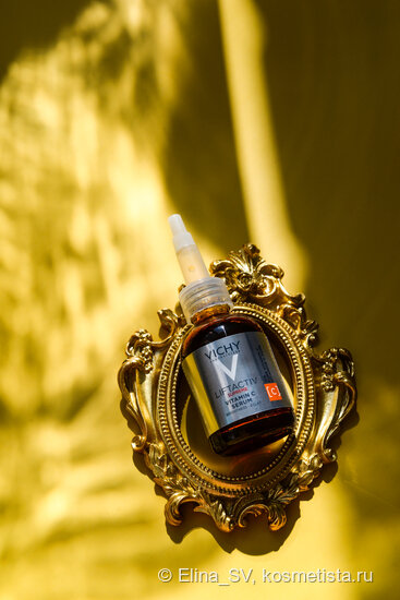 В этой публикации поделюсь опытом использования сыворотки VICHY Liftactiv Supreme Vitamin C Serum. Сыворотку я использую с целью придания коже естественного, здорового сияния, всегда перекрывая её Vichy Capital Soleil UV-age daily Spf50+, для защиты кожи от солнца и пигментирования. VICHY Liftactiv Supreme Vitamin C Serum Упаковка. Концентрированная сыворотка с витамином С для сияния кожи выпускается в картонной коробке. Внутри флакон из темного стекла объёмом 20 мл. и сменная крышка-пипетка, которая обеспечивает удобство использования и сохранность продукта. Сразу замечу, что формат с такой пипеткой довольно редкий. Мне нравится эта ворма, которая работает без погружения пипетки в средство, так сыворотка меньше контактирует с внешней средой. Состав продукта обогащен аскорбиновой кислотой (форма витамина С) в концентрации 15%, которая занимает 2 место, после вулканической воды. В составе средства есть денатурированный спирт, наличие которого в косметике могут избегать некоторые пользов