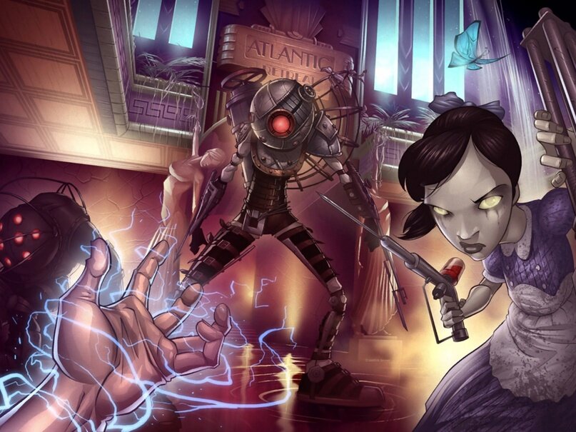 Исходя из этих концепций и была придумана история первого Большого Папочки, который всю игру спасает привязанную к нему Элеонору. Основным конфликтом же стала борьба альтруизма и эгоизма, разные грани которых в итоге и развалили Восторг.