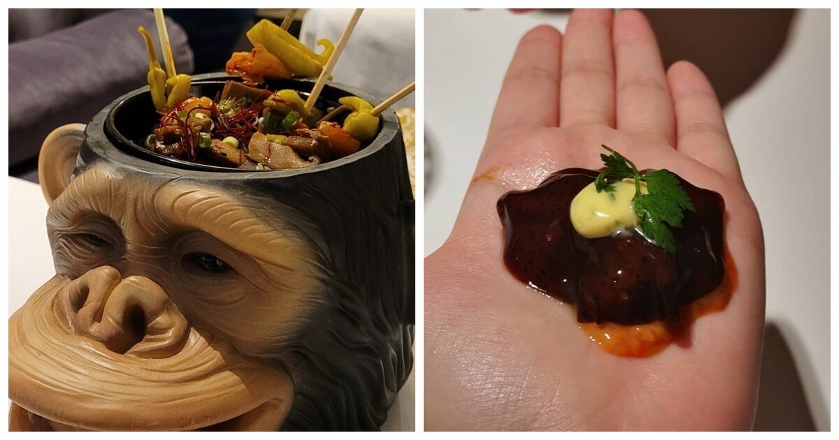 Сегодня всё больше ресторанов отказываются от обычных белых тарелок и решают поэкспериментировать с креативными способами подачи блюд, чтобы привлечь клиентов. Сервировка - очень важная часть ужина вне дома, и многие повара идут на многое, чтобы сделать еду более аппетитной. Но в итоге у некоторых рестораторов получаются очень запутанные презентации блюд, которые навсегда останутся в памяти удивлённых клиентов. Взгляните! 1. Манговый пудинг в виде кукурузы на каменной плите и зачем-то с тремя ложками 2. Кажется, на тарелке эти блюда выглядели бы аппетитнее. Да и мыть тарелки удобнее, чем деревянные доски 3. Заветренный бутерброд с сыром из рюмочной? Кстати, с такими тарелками ресторан должно быть называется "Подайте кто сколько может" 4. Можно и поесть, и поиграть 5. Образцы чизкейков 6. Шеф-повар готовит закуску у вас на глазах на руках 7. Чего-то только не найдёшь в дамской сумочке... 8. Чтобы не обманули 9. Рестораны, пожалуйста, нанимайте людей без фантазии 10. И блюдо неаппетитно