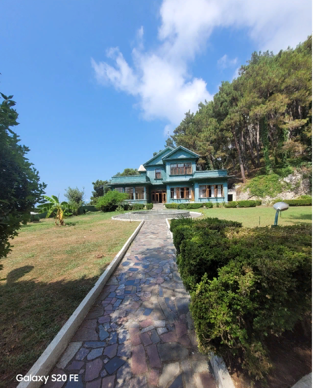 В минуте ходьбы от нашего гостевого дома всегда стоят такси. Компания наша - пять человек, поэтому нам очень подходит минивен. Договариваемся с одним из таксистов и едем. От места нашего проживания дача находится в пяти километрах. И вот мы на месте. Огляделись, увидели, куда нам нужно зайти. Позже узнали, что проход к даче Сталина называется проходная. В самом начале проходной, которая напоминает широкий длинный коридор, стоит стол, за столом девушка с ноутбуком. Обращаемся к ней с вопросом, как бы нам посмотреть дачу Сталина. Девушка нам объясняет, что если мы просто хотим походить - посмотреть по территории, то вход для нашей компании из пяти человек стоит 1000 руб, а если же нам нужна экскурсия, то это стоит 1300 руб на всех. Но нам же конечно интересней с экскурсией. Девушка направляет нас к молодому человеку, который стоит в конце коридора. Подошли к Тимуру, так звали экскурсовода, он нам объяснил, что экскурсия начнётся через 20 минут, а пока мы можем погулять по территории.
