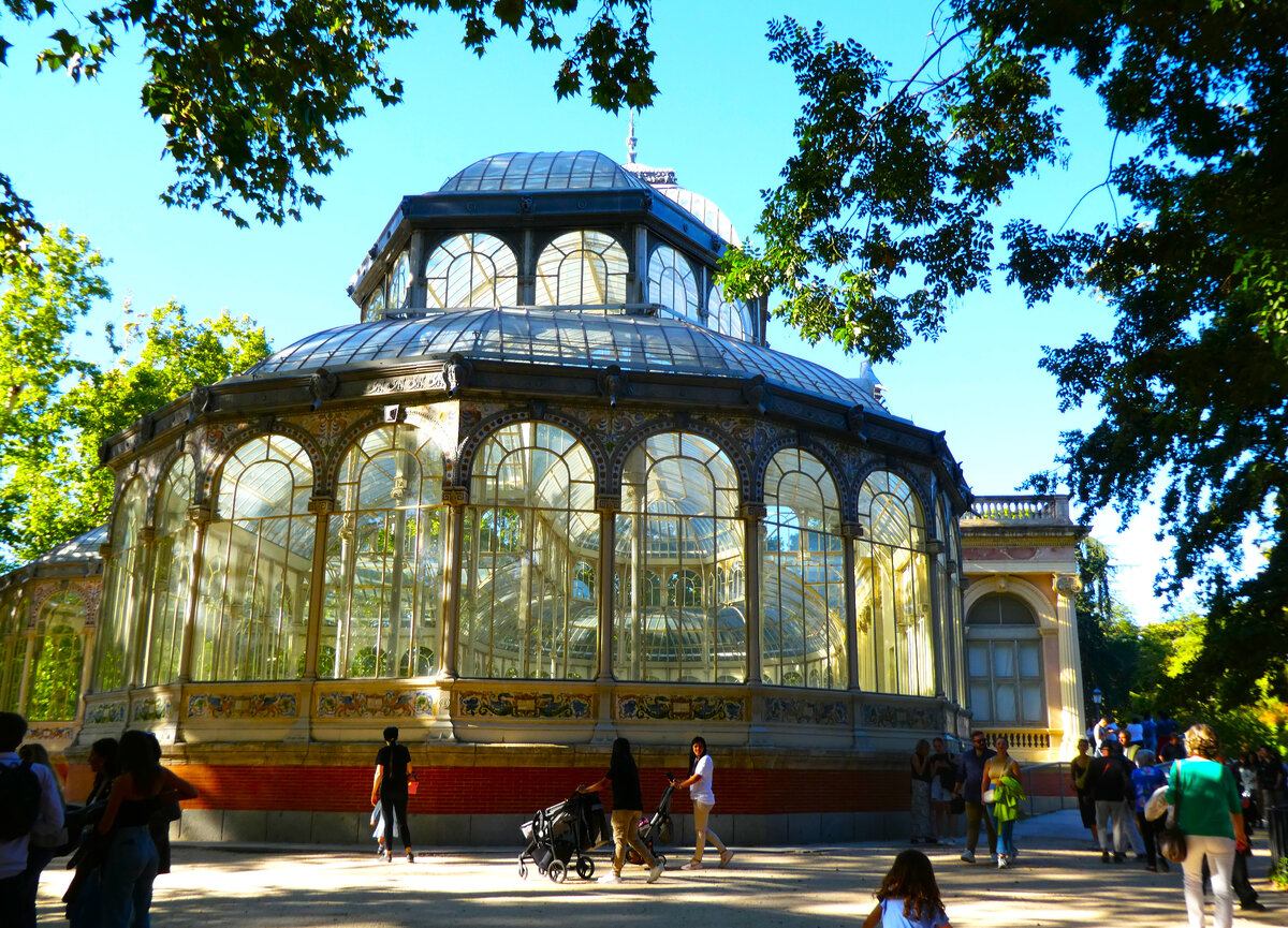 - Парк Ретиро. Ну, это была чистой воды дань семейным ценностям (кстати, с ними в Испании всё отлично, судя по наблюдениями за людьми в парке) и вольная трактовка реплики Мэри Поппинс: «Я с детьми, и мы идём гулять в парк!». В Ретиро мы действительно поехали гулять с племянниками, но и вне зависимости от этого я удовольствие получила: красивый хрустальный дворец, чудный розарий, павлины, фонтаны, пруд с лодочками... Тот случай, когда по своей инициативе (если бы не дети) не пошла бы, но в итоге получилось классно. В завершение вечера мы ещё и рыб в пруду покормили, и вот эти рыбы были совершенно безумными. Я даже видео сняла — оцените количество, активность и накал страстей!