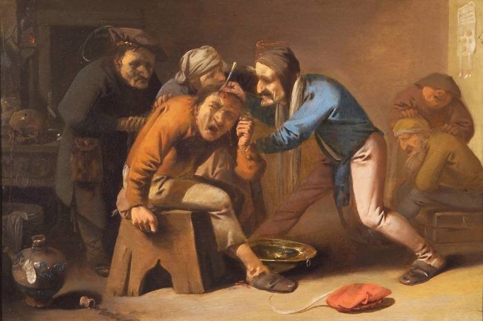 Порой, узнавая все новые реалии эпохи Средневековья, не перестаешь удивляться глупости и ограниченности того общества в некоторых областях знаний. В 15 веке люди полагали, что причиной всех психических расстройств является якобы «камень безумия», который находится в голове. Поэтому его «извлекали» путем трепанации черепа. Исторические факты из жизни людей эпохи Средневековья порой поражают современного обывателя своей глупостью и примитивностью. Так, существует серия картин, которые отображают методы лечения тогдашними врачевателями человеческого безумия. На каждом из полотен изображен процесс трепанации черепа, откуда достается «корень всего зла» - камень безумия.