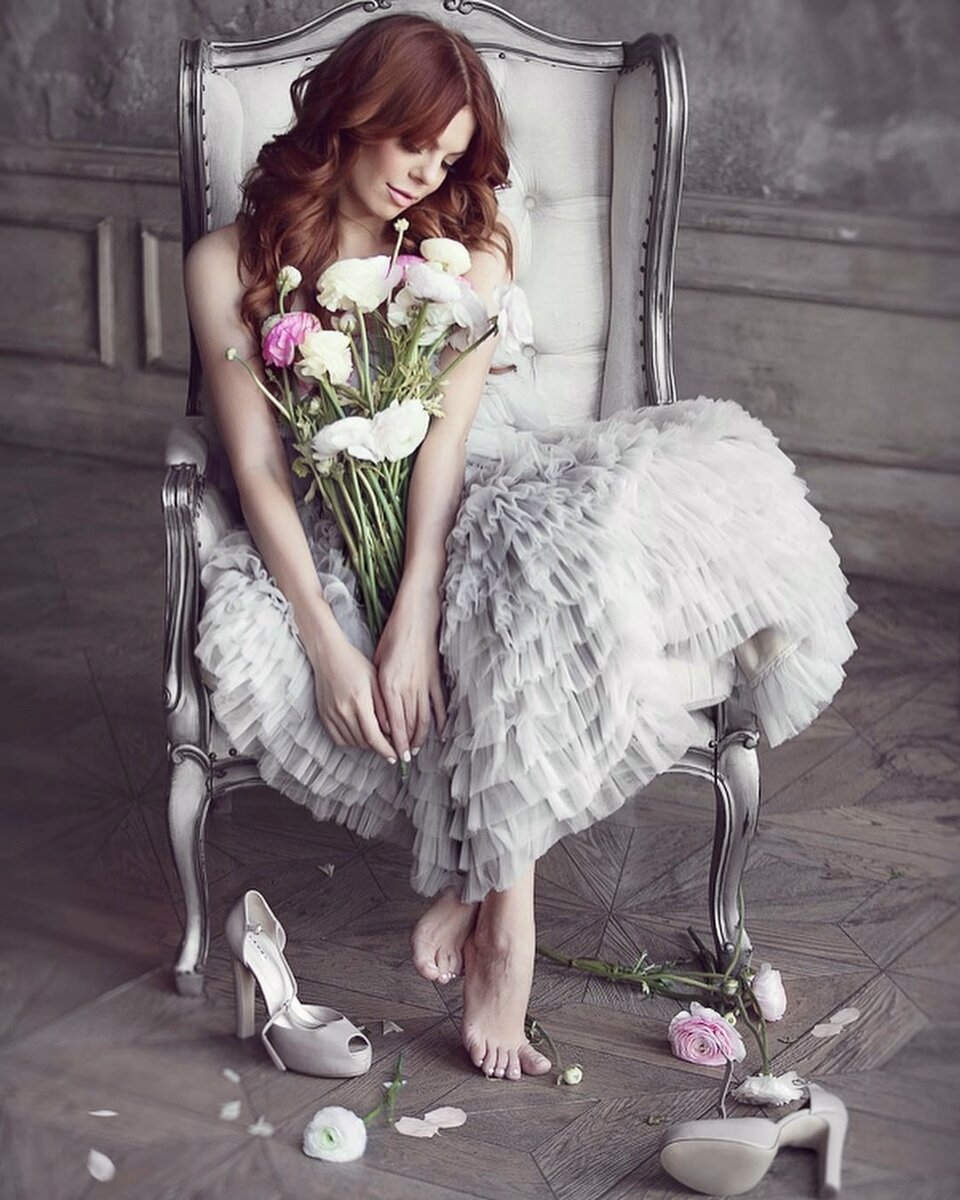 Особенно это заметно тогда, когда мы снимаем образ, в который входит пышное длинное платье, ткани, цветы и тд…