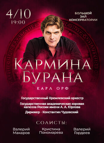 Исполнит Кармину Бурану Государственный Кремлёвский оркестр Управления делами Президента РФ под руководством дирижера Константина Чудовского.
