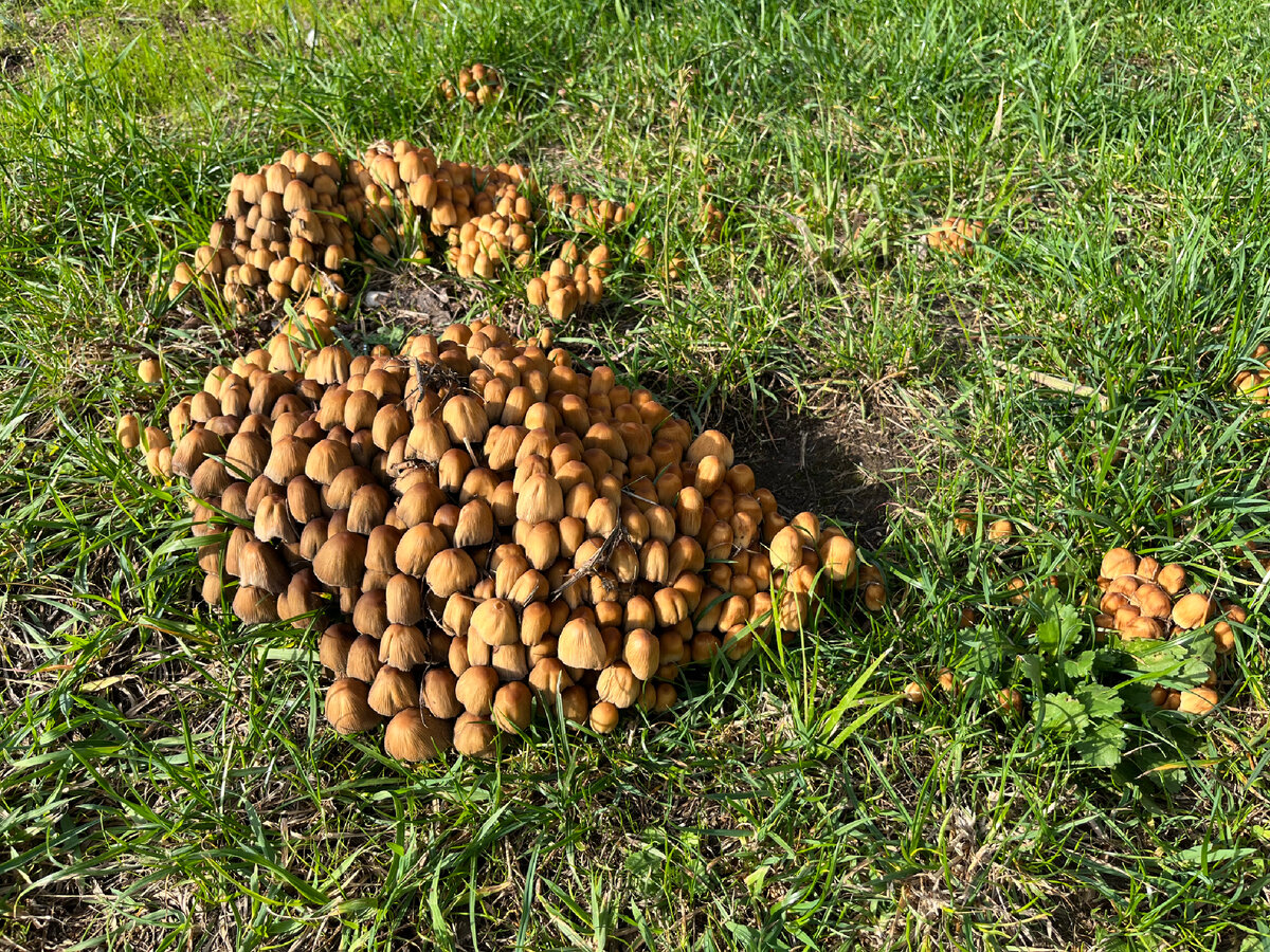 Сегодня утром не могла понять что я вижу. Что это лежит? Картошка что ли? А кто высыпал сюда эту кучу? Без очков не сразу поняла, что это за ночь выросли грибы! Прям посередине участка приличная кучка грибов, в диаметре примерно 40 см. Как они туда попали, как так быстро выросли и почему они вообще там выросли? Одни вопросы. Тщательно изучив тему грибов на участке, я поняла, что во-первых бояться нечего! Во-вторых, это лечится. Что необходимо сделать, для того, чтобы избавиться от грибов на участке? 1. Можно удалить сами грибы с грибницей. К примеру, выкопать. 2. Посыпать их солью. От этого они должны почернеть. 3. Раскислить почву на участке. Я и так знала, что она кислая, грибы - ещё одно подтверждение. Для раскисления подойдет известь, доломитовая мука, зола. 4. Улучшить дренаж и сократить полив. Желательно пройтись по участку граблями, можно перекопать какую-то часть. 5. Избавиться на участке от старых пней и коряг. Именно на них грибы любят появляться. В целом - грибы никак не у