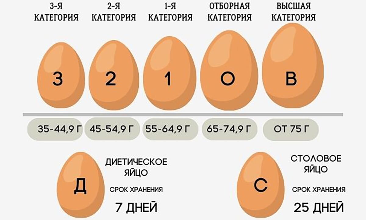 Здравствуйте мои читатели и гости моего канала, сегодня мы разберём почему яйца в магазине продают разных категорий , как определить свежие яйца или нет и какие витамины и минералы содержит 1 яйцо. Категория яиц : Категории яиц нужны для определения качества и свежести яиц. В зависимости от категории, яйца могут быть использованы для разных целей: 1. Высшая категория (В) - яйца с массой более 75 грамм, обычно самые свежие и качественные. Используются для приготовления деликатесных блюд, где требуется минимальное разрушение структуры яйца (например, прозрачные омлеты, безе, бисквиты и т.д.). 2. Отборное яйцо (О) - яйца массой от 65 до 74,99 грамм. Подходят для большинства рецептов, где требуются яйца. 3. Первая категория (1) - яйца массой от 55 до 64,99 грамм. Используются там, где не требуется высокое качество яиц (например, в выпечке). 4. Вторая категория (2). - яйца массой от 45 до 54,99 грамм. Обычно это старые яйца, которые дешевле, но могут быть использованы в некотор