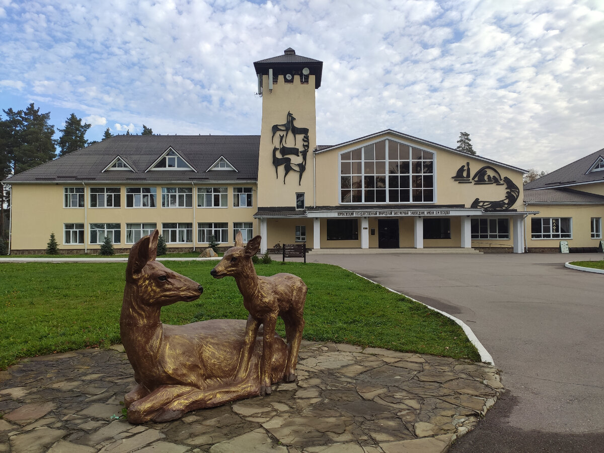 Будильник, поставленный на 7 утра оказался ненужным. Мы накануне нагулялись и выключились неприлично рано, поэтому утром встали задолго до звонка. К 8 утра идем знакомиться с директором заповедника и решить все оргвопросы. Заодно успеваем познакомиться с охраной и наукой. В 10 утра пропуска выписаны, распечатанные квартальные карты у нас в руках, остается только бросить в рюкзак горсть конфет, бутылку воды и рации. Наша задача - пройти до поляны, где обычно ревут олени, посмотреть на наблюдательную вышку и прикинуть места для съемки. Ну и по пути наблюдать все, что попадется интересного. На улице не по-осеннему жарко, днем обещано до +27. Рано утром еще на небе были облачка, к полудню все очистилось. Ни ветерка, ни облачка.. Идем по просекам. Дорога пока песчаная, мягкая, если бы не опавшая листва, то шагов совершенно не слышно, песок хорошо скрадывает звуки. Вокруг настолько тихо, что слышно, как падают на землю листья. А от опадающих с дубов желудей такой шум, что постоянно ищешь