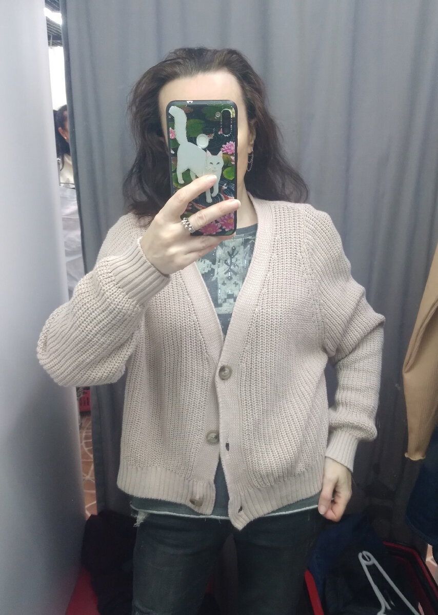 Здравствуйте, мир не стоит на месте и за ним надо успевать. Я стараюсь, но иногда туплю. Могу начать переживать, а пришли ли анализы врачу, хотя надо просто зайти на сайт и всё увидеть. Я не сразу въехала зачем сын оденется и стоит дома, а он автобус ждёт! Зачем мёрзнуть на улице, если автобус можно увидеть на карте и выбежать тютелька в тютельку. В банк не надо идти, всё можно сделать в телефоне. Надо соответствовать времени. Зато как я умилялась когда пару лет назад в стоматологической поликлинике увидела тетрадки с записью и ручку на верёвочке 🤣. Обзор из Столичного гардероба, все можно было купить со скидкой 60%. Кардиган из хлопка и акрила. Нюдовый оттенок и гладкая вязка без узоров. Не люблю я сливаться с одеждой, но кому-то такой цвет будет идти. Полная цена 1800 рублей. Джинсовая туника с застежкой на груди, сбоку небольшие разрезы. Полная цена 1200 руб. Синяя классическая джинсовка с потертостями. Украшена вышивкой, небольшими розовыми цветами. Полная цена 2200 рублей. Деми